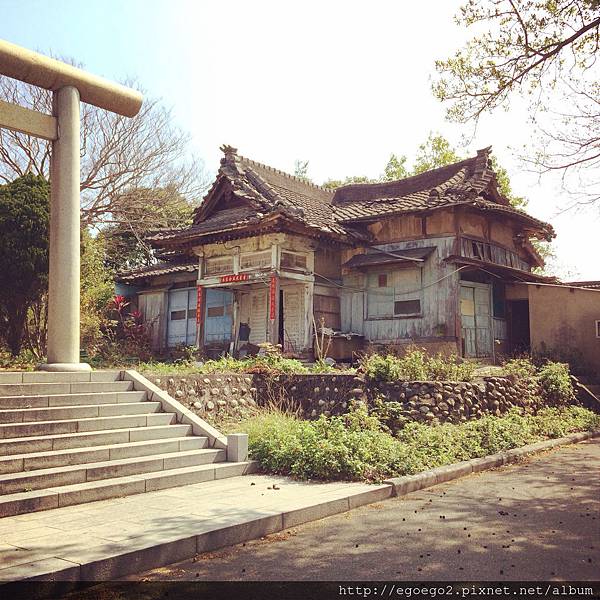 步道很短,不過登高位置很好,可以眺望海邊風車,神社因為重新整修過,變成中日合璧,很奇怪,反而是旁邊這戶人家,還保存著古建築的風格,很像神隱少女裡頭的建築。(目前還有人住,所以請勿打擾喔!)